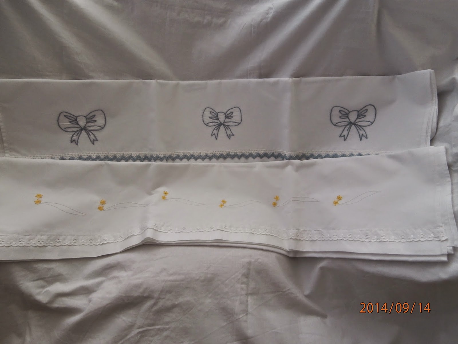 Da minha Amiga Luísa, a quem peguei o vício de fazer lencinhos para as nossa guerreiras dos IPO e lençóis para os enxovais.